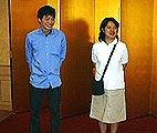 「じゃん、けん、ポン」![]() アレー、負けちゃいました。だから言わないこっちゃない。 次に個人戦の同点者のじゃんけんです。「個人戦は2位が4名いらっしゃいます」。・・・やっぱり。そうすると主人が優勝です。2位は1つの間違いが自動的に2問間違いになるのです。 4人の名前が読み上げられました。私たちのチームの林さんも呼ばれてステージの方に歩いていきます。 ![]() 右から2番目。奥の方にいる人が林さんです。私のかわりに今度こそ、じゃんけんの雪辱戦です。ガンバレー …第7話につづく… |