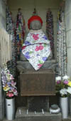 | 6月6日。午後1時30分。 JR信越線長岡駅の南。宮内駅の近く。長岡市摂田屋という場所。 ここにお地蔵様があります。毎年、8月のお祭りには、お年寄りや子供達が大勢集まり、ローソクや花が絶えることはないということ。台石には「右は江戸 左は山道」と彫られていて、かつて三国街道の道しるべ地蔵様であったことが偲ばれます。いつも柔和な微笑みを浮かべ今も道行く人々を見守っているようにも伺えます。ここは「越のむらさき」の会社の前。 この蔵の歴史は古く創業は江戸時代天保2年で、昨今米百俵で一躍有名になった越後長岡藩の領地にありました。現在でもこの一帯は田んぼに囲まれ、古くからの集落が続いている土地です。 会社の入り口のすぐ左側。ここにさっきのお地蔵様が祀られています。 |