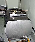 実はこれはとてもすごいことなのだと隣で主人が耳打ちをしてくれました。 続いて槽式搾り機を見せてもらいました。槽の中はきれいなステンレス張りになっています。 ![]() これは主に大吟醸などの高級酒を搾るときに使います。 この方が吟醸酒などの小さなタンクで造られた少量のもろみを搾るときに向いていて、また、圧力をかけないで自然にもろみを搾ることが出来るので昔から使われている仕組みの搾り機なのだそうです。 構造は機械の下部に槽という入れ物があり、そこにもろみを小さな酒袋に入れて底の方から敷き詰めて、それを何段にも重ねていきます。するとそのもろみ自体の重さで数時間ほどお酒が自然に流れ出てきます。 袋を「ろ紙」代わりにしてお酒が袋の編み目を通り抜けて下に流れ出てくるのです。 |
